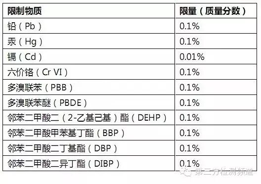 2015年6月4日,欧盟官方公报(OJ)发布RoHS2.0修订指令(EU)2015/863,正式将DEHP、BBP、DBP、DIBP列入附录II 限制物质清单中,至此附录II共有十项强制管控物质,详见下表: